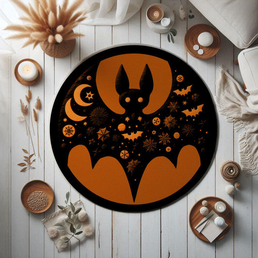 Bat Rug, Halloween Horror Rug, Orange Black rug, Spooky Bat Rug, Halloween Bat Decor, Horror Themed Rug, Halloween Living Room Rug