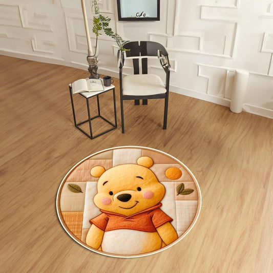 Adorable Pooh Nursery Rug - Round Play Mat for Baby and Kids Room Decor - Soft Rug for Nursery - Bear Rug - Winnie The Pooh Rug