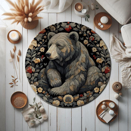 Bear Woodland Rug, William Morris Style Rug, Nature Inspired Rug, Vintage Bear Rug, Living Room Rug, Rustic Decor Rug, Woodland Nursery Rug
