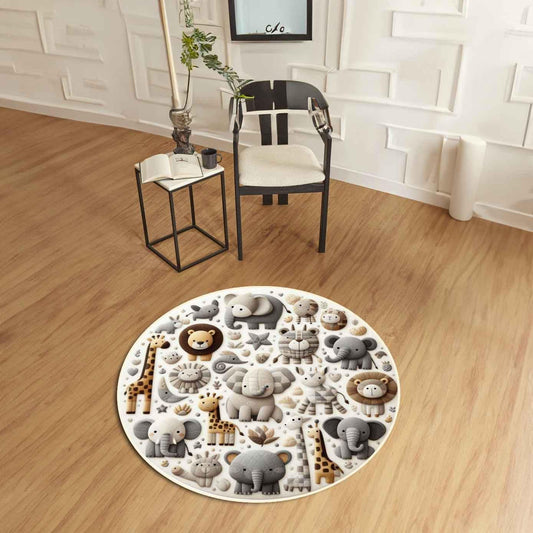 Safari Animals Nursery Rug, Round Rug, Baby Room Decor, Cute Animal Rug, Playful Lions Rug, Elephants & Giraffes Rug,Kids Room Rug Floor Mat