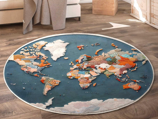 World Map Round Rug, Kids Room Rug, Playroom Rug, Nursery Rug, Bedroom Rug, Educational Rug, World Map Decor, Circle Rug, Area Rug