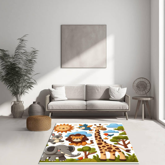 Cute Safari Animals Rug, Nursery Rug, Playroom Rug, Kids Room Rug, Animal Rug, Baby Rug, Toddler Rug, Jungle Rug, Colorful Rug