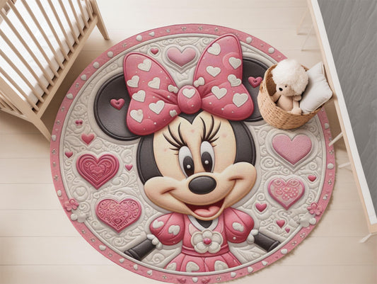 Disney Minnie Mouse Nursery Rug, Soft Pink Minnie Mouse Rug, Baby Room Decor, Playroom Area Rug for Girls, Disney-Inspired Room Carpet