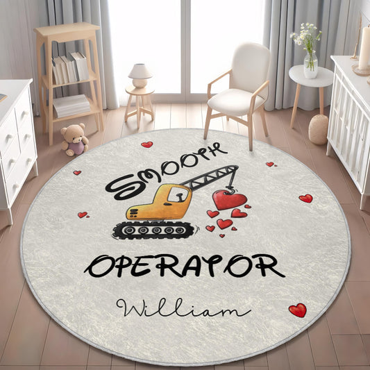 Custom Smooth Operator Rug, Personalized Construction Rug, Valentine's Day Rug, Playroom Decor, Nursery Rug, Round Rug for Boys,Gift for Boy