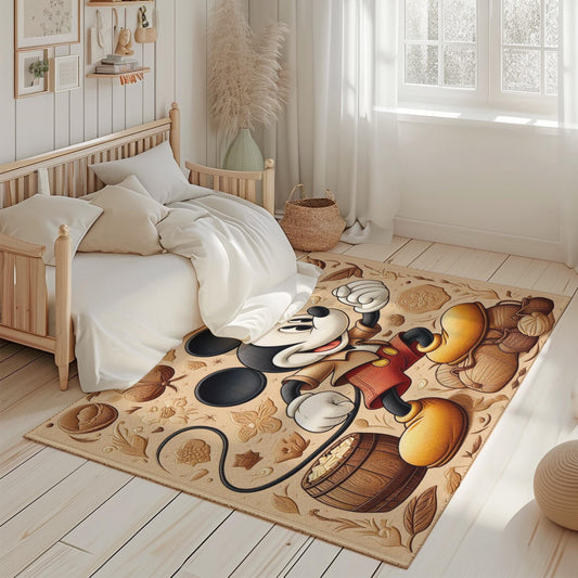 Disney Mickey Mouse Nursery Rug, Vintage Mickey Rug, Rustic Mickey Mouse Decor, Playroom Rug, Baby Room Decor, Kids Room Rug, Brown Area Rug