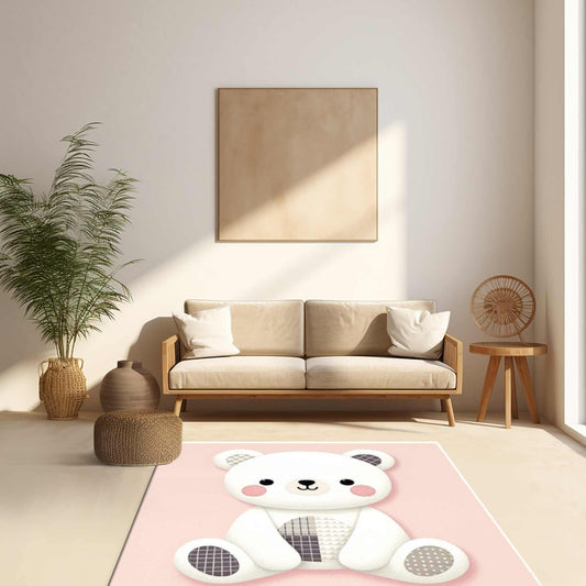 Cute Pink Bear Kids Rug - Washable Baby Room Mat - Playroom Rug - Childrens Room Rug - Adorable Girls Room Rug