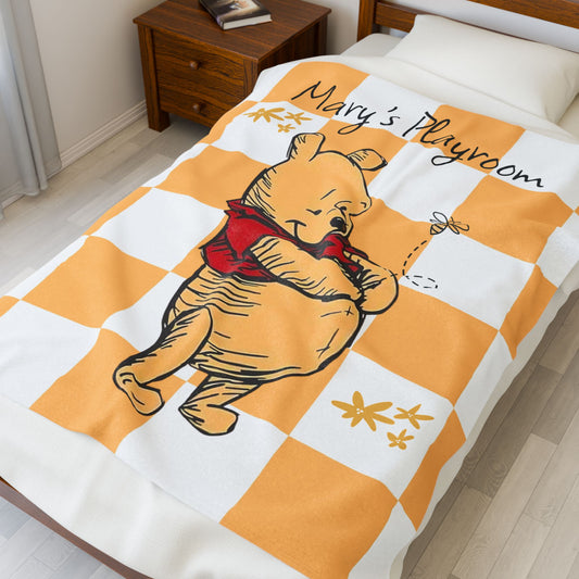 Personalized Winnie The Pooh Blanket for Kids, Winnie the Bear Blanket