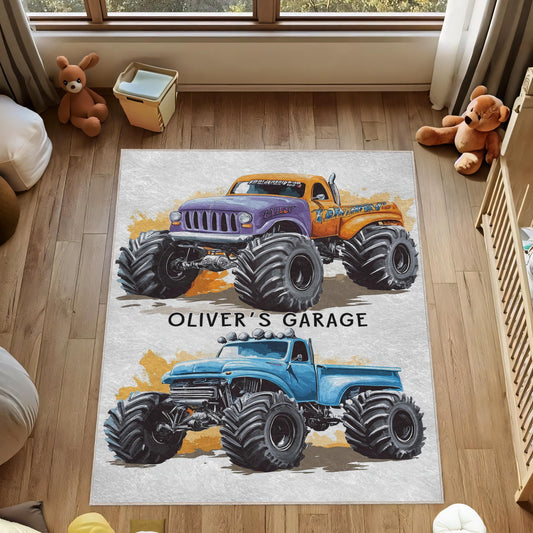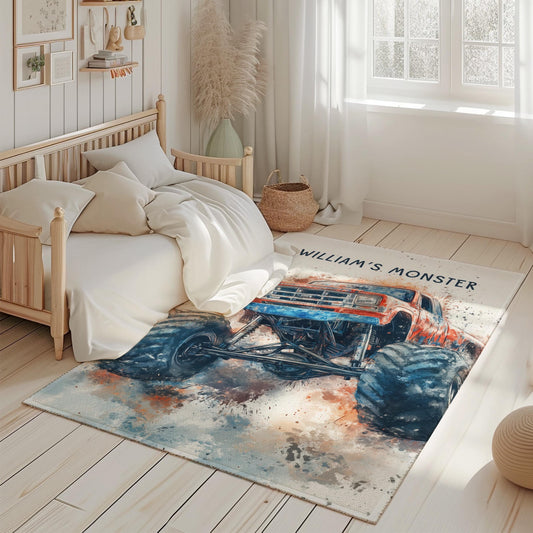 Personalized Monster Truck Rug, Custom Name Kids Room Decor, Boys Room Rug, Monster Truck Design Rug, Playroom Rug, Gift for Boys