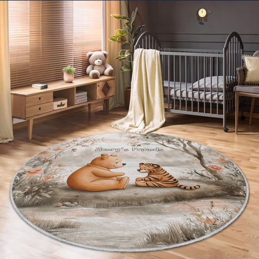 Personalized Pooh Bear & Tigger Kids Rug, Custom Name Nursery Carpet, Winnie the Pooh Playmat, Forest Animal Room Decor, Baby Gift Idea