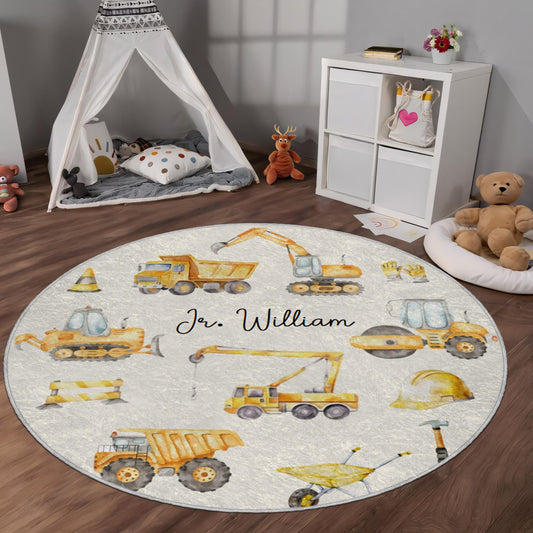 Personalized Construction Truck Rug, Excavator and Trucks Rug, Custom Playroom Rug, Kids Play Rug, Truck Themed Nursery Rug, Gift for Boys