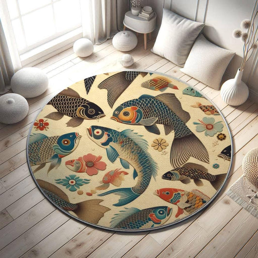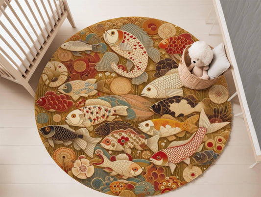 Japanese Round Fish Rug, Koi Fish Rug, Oriental Rug, Gold Fish Rug, Round Fish Rug, Koi Carp Rug, Japanese Style Rug, Oriental Carp Carpet