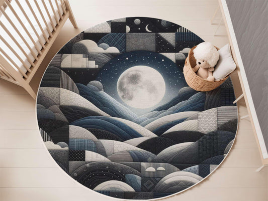 Midnight Sky Design Rug, Abstract Geometric Floor Art Rug, Dark Night Rug, Living Room Rug, Home Decor, Full Moon Rug, Artistic Floor Rug