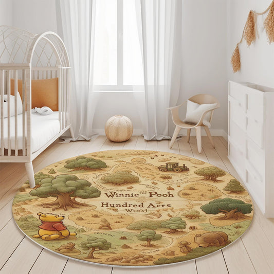 Hundred Acre Wood Nursery Rug, Winnie the Pooh Play Mat, Cartoon Bear Kids Rug, Soft Nursery Rug, Winnie the Pooh Themed Playroom Rug