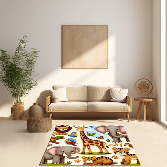 Jungle Animals Rug, Safari Rug, Kids Room Rug, Nursery Rug, Playroom Rug, Educational Rug, Animal Theme Decor, Colorful Rug, Giraffe Rug