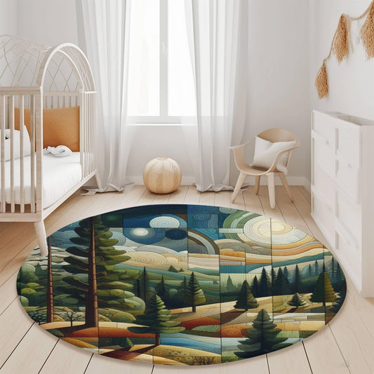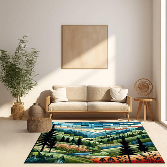 Modern Geometric Landscape Rug, Mountain Forest Area Rug, Abstract Nature Area Rug, Living Room Bedroom Rug, Nature Inspired Decor,