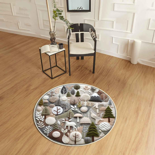 Forest Nursery Rug, Round Rug, Woodland Rug, Forest Animals & Trees Rug, Sensory Play Mat, Nursery Rug, Baby Rug, Fall Hosting Rug