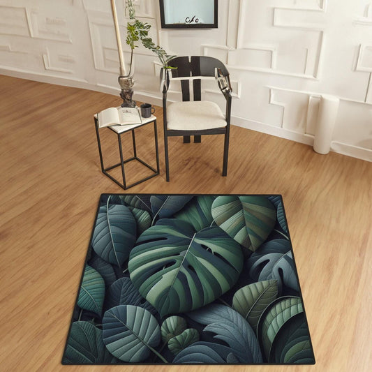Exotic Leaf Area Rug, Botanical Leaves Rug, Monstera Leaf Rug, Non Slip Carpet, Botanical Pattern Rug,Green Leaf Accent,Botanical Home Decor