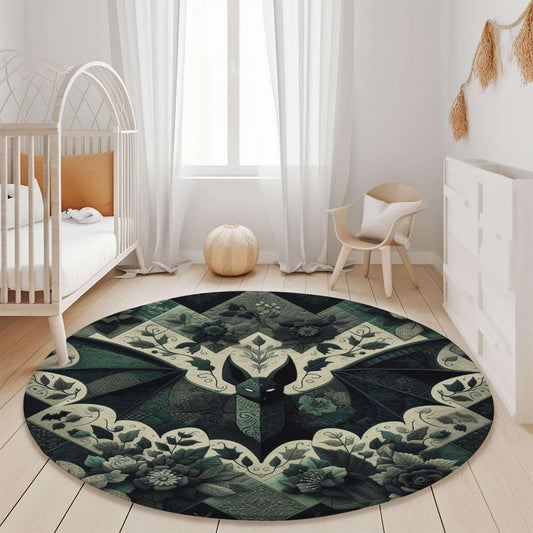 Goth Bat Rug, Floral Gothic Rug, Botanical Green and Black Design Rug, Perfect Rug for Halloween Season Decor,Gothic Home Decor,Gift For Her