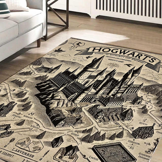 Wizarding School Rug, Witchcraft Academy Rug for Teens, Magical Decor for Teenager's Room, Fantasy Themed Rug, Cozy Bedroom Carpet