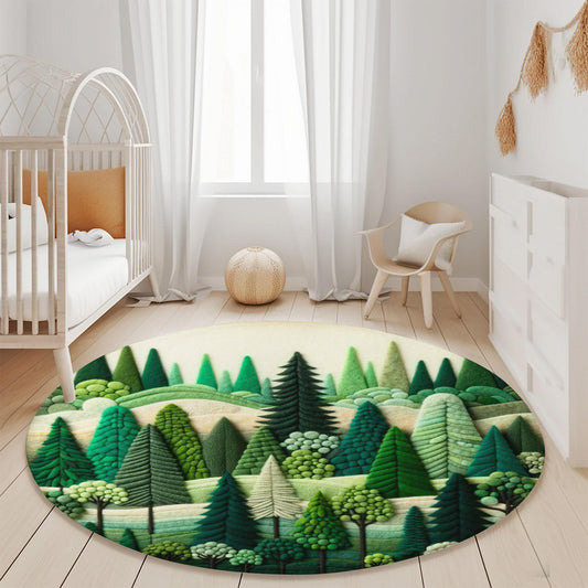 Woodland Adventure Round Rug for Kids, Forest Friends Play Rug, Soft and Cuddly Woodland Friends Rug for Your Little Adventurer, Landscape