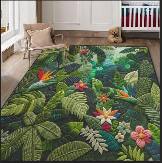 Monstera Rug - Tropical Area Rug, Green Exotic Vibes Carpet, Palm Leaf Design Mat - Child's Paradise Rug, Kids Room Rug, Living Room Rug