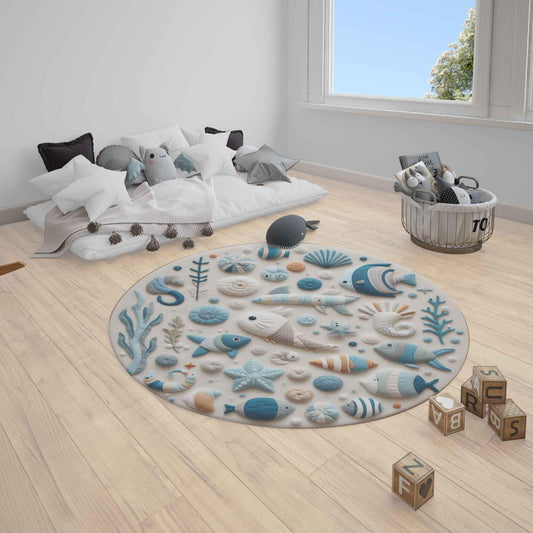 Nautical Rug for Kids Room, Sea Animals Nursery Rug, Ocean Play Rug, Marine Area Rug, Baby Room Decor, Underwater Blue Rug for Kids Playroom