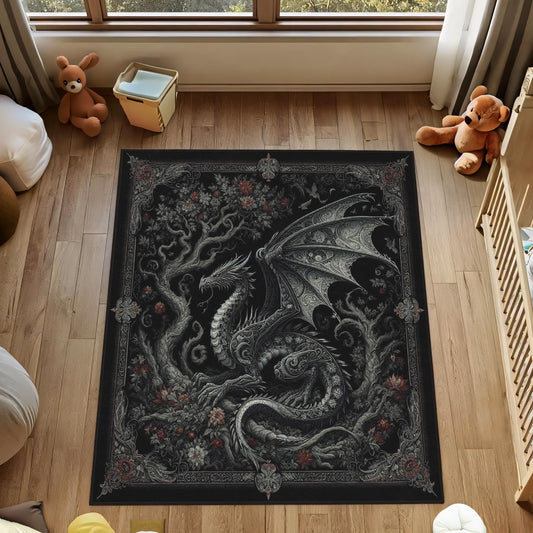 Gothic Rug, Dragon Rug, Fantasy Carpet, Dark Academia Decor, Mythical Creature Rug, Black Rug, Living Room Rug, Bedroom Rug, Dragon Carpet