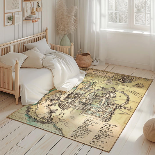 Fantasy Wizarding School Map Rug, Magical Castle Map Carpet, Enchanted World Rug, Wizardry Themed Rug, Youth Room Rug, Teenager Room Rug