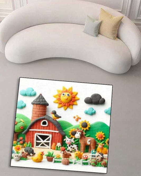 Farm Life Nursery Rug with Playful Dough Style Design - Kids Farm Animals Baby Mat - Playroom or Bedroom Decor - Cow Goat and Pig Rug