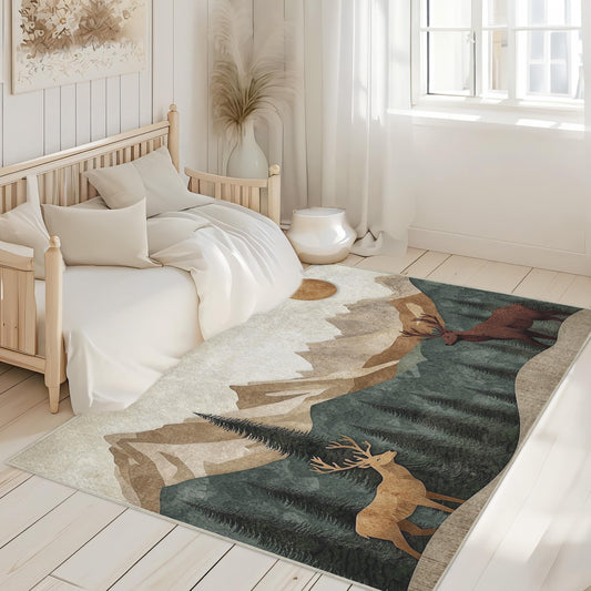 Woodland Animal Deer Rug | Mountain Rug | Fall Woodland Deer | Deer Decor Rug | Deer Print Rug