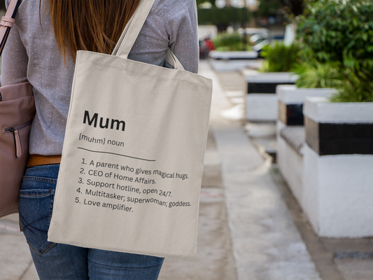 Minimalist Typography Dictionary Mum Tote Bag, Mother's Day Gift for Mom, Funny Mama Shoulder Bag, Minimal Mother Canvas Handbag, Mommy Tote